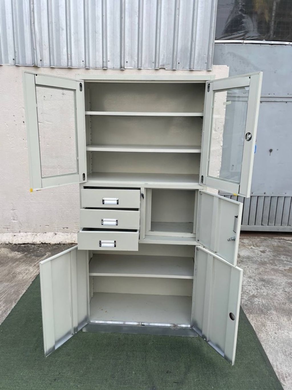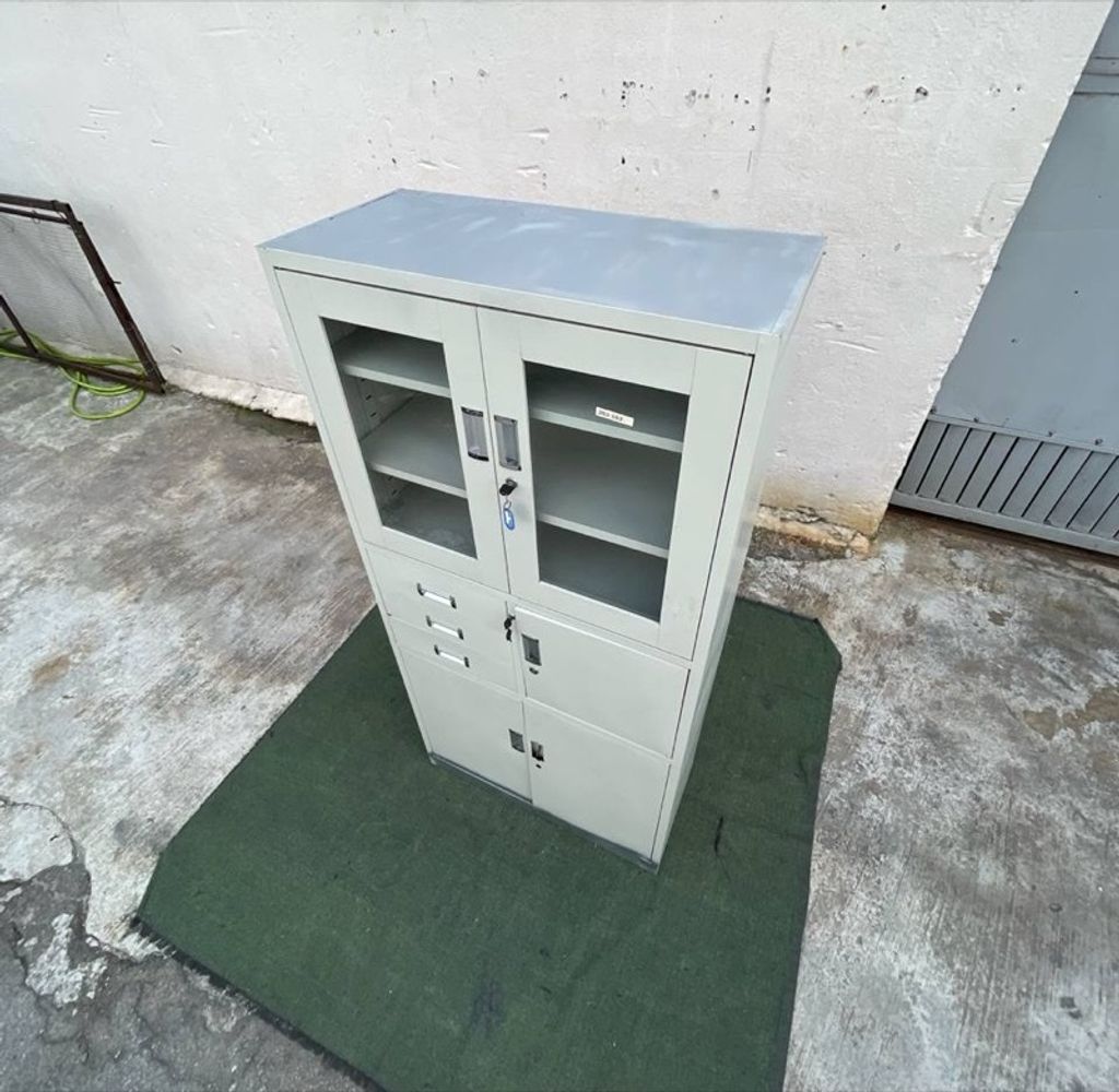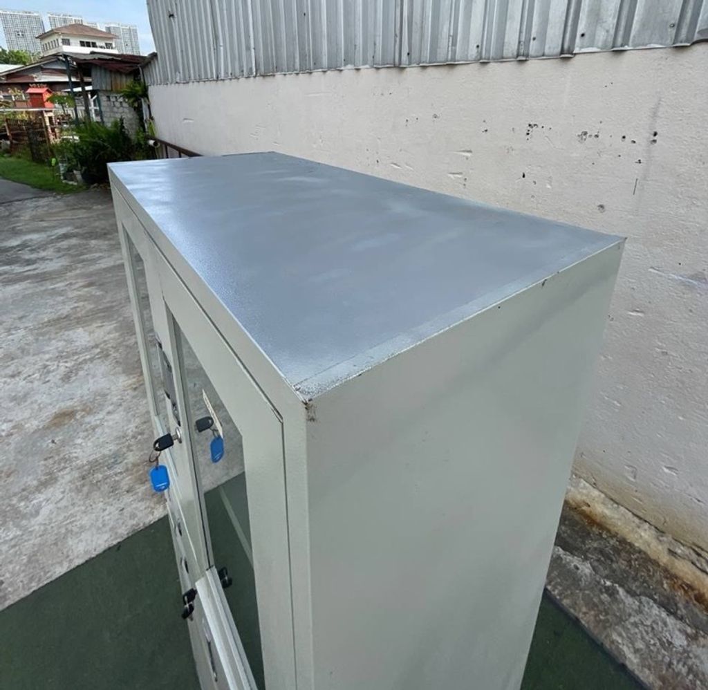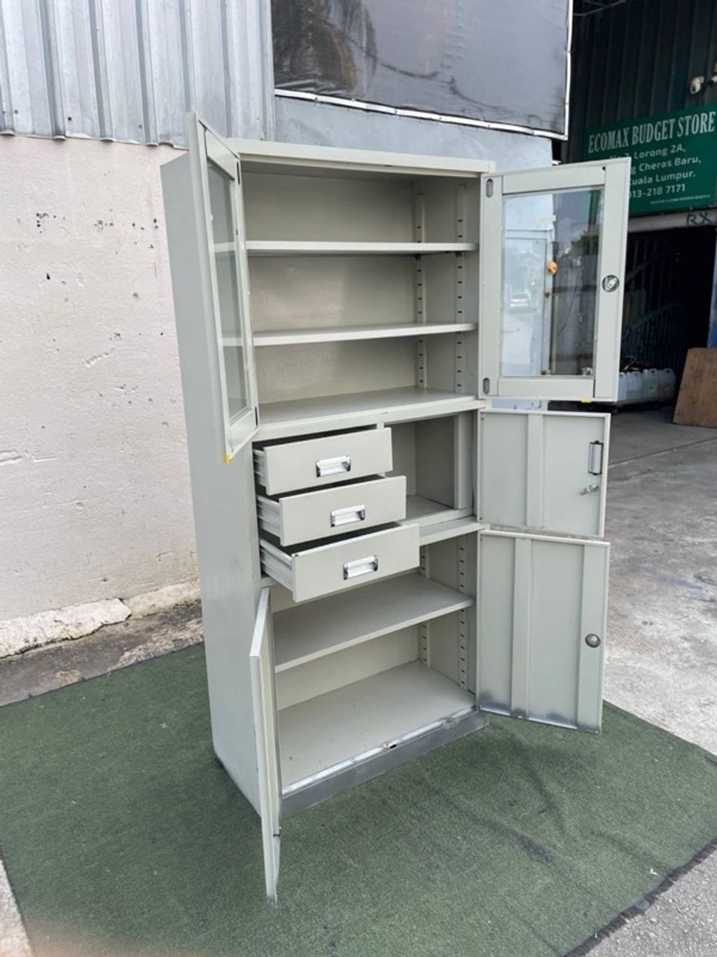 Almari Besi Pameran 5 Doors 3 Drawers Full Height Metal Display Cabinet Creamy