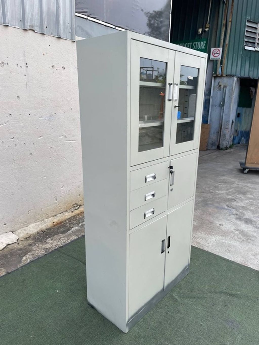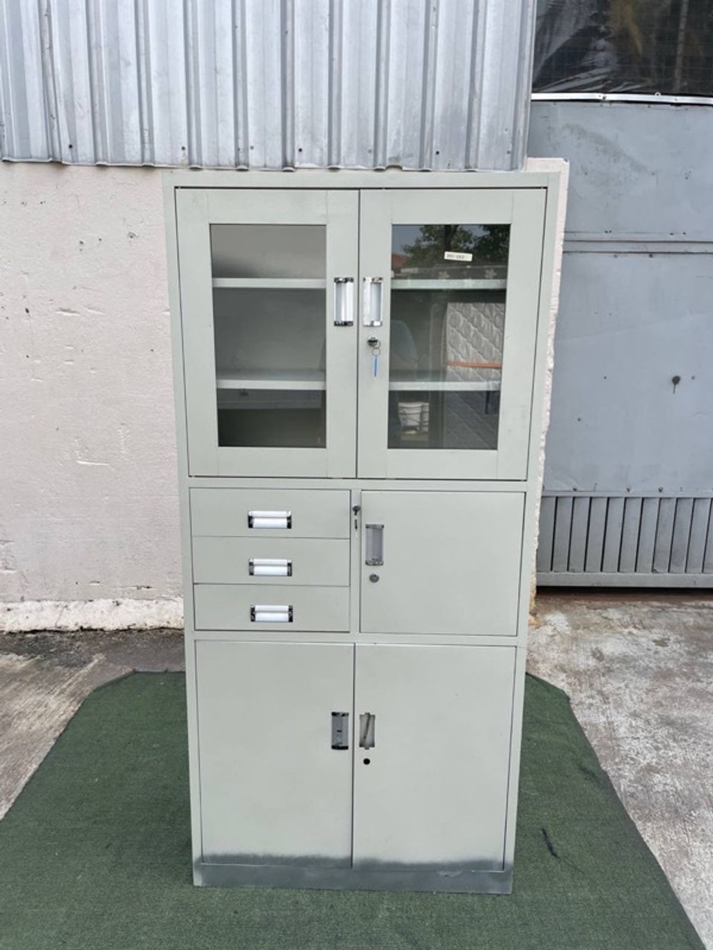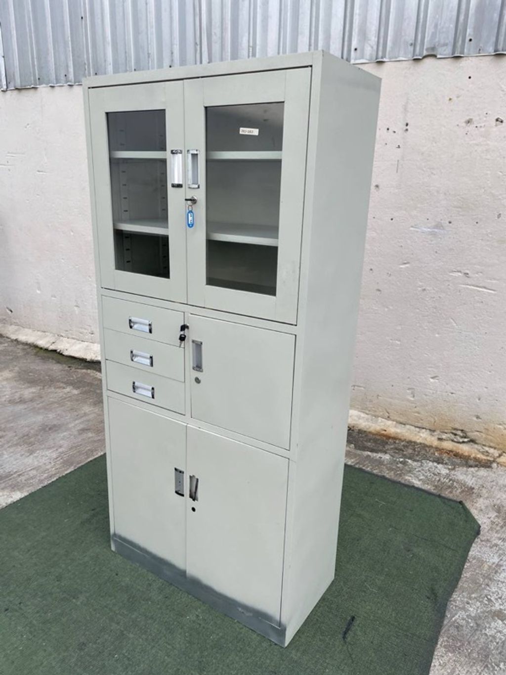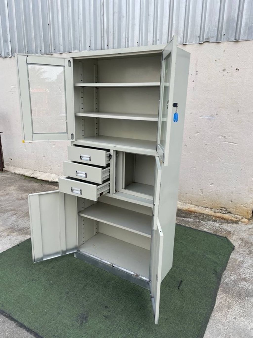 Almari Besi Pameran 5 Doors 3 Drawers Full Height Metal Display Cabinet Creamy